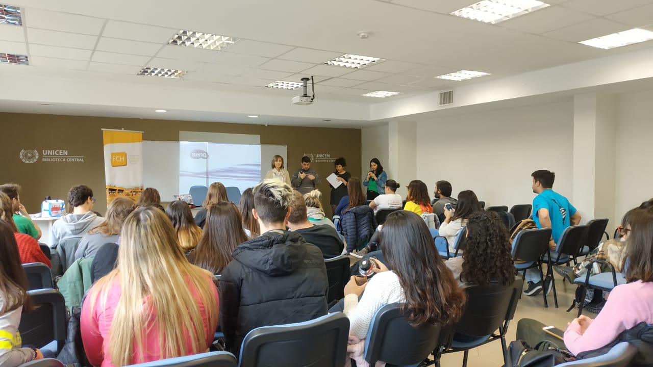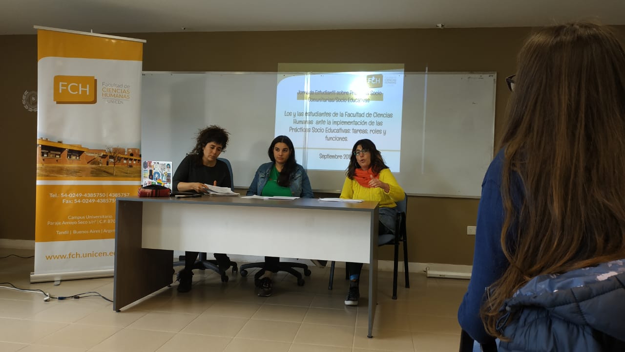 La actividad fue co organizada por el Centro de Estudiantes FCH y el programa de Prácticas Socio Comunitarias de la Secretaría de Extensión y Transferencia de nuestra Facultad, coordinado por la Lic. María Elena Bustos. La jornada dio inicio con la presentación institucional a cargo de la Secretaría de Extensión FCH Dra. Mónica Blanco y el vicepresidente del centro de estudiantes Nicolás Pintueles, para luego dar paso al panel denominado “Los y las estudiantes de la Facultad de Ciencias Humanas ante la implementación de las Prácticas Socio Educativas: tareas, roles y funciones”, integrado por Silvina Latorre, representando a la Secretaría de Extensión de la UNICEN, Juliana Serralunga, por la Secretaría de Articulación Social del CEFCH y Ma. Elena Bustos por el programa de Prácticas Socio Comunitarias.