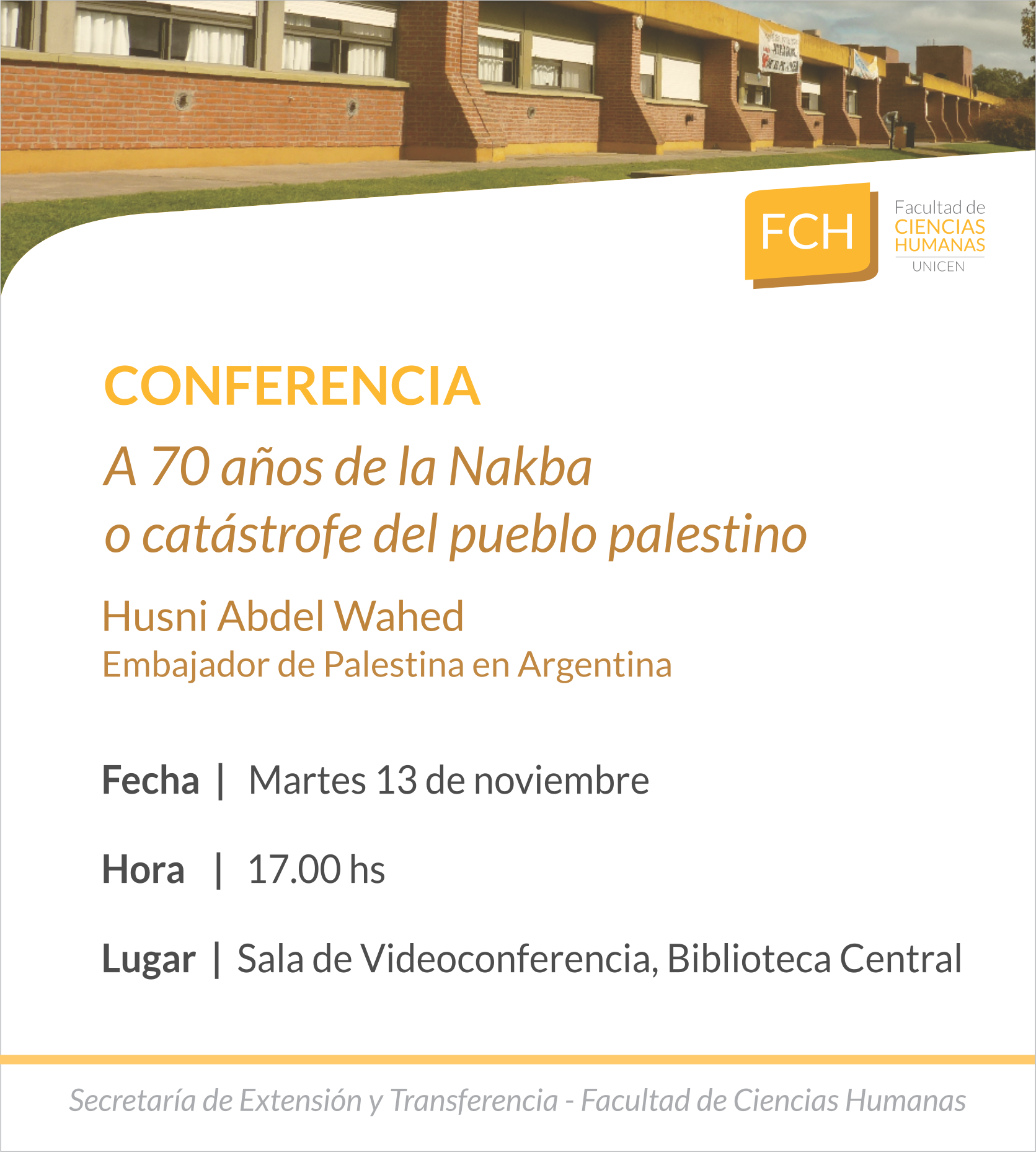 El día 13 de noviembre a las 17 hs. en la Biblioteca Central de la UNICEN dictará una conferencia el Embajador de Palestina en Argentina, Sr. Husni Abdel Wahed.
