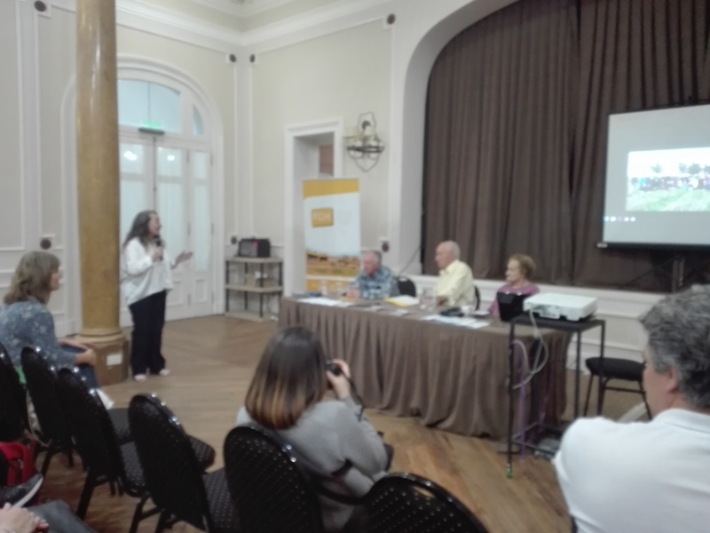 Luego de proyectarse los videos, la Secretaria de Extensión y Transferencia de la FCH, Dra. Mónica Blanco, y la Directora del Centro de Investigaciones Geográficas, Dra. Diana Lan, hicieron entrega de reconocimientos a modo de agradecimiento a Lucía Elusich, Santiago Zampatti y Floreal Pastor, protagonistas de las entrevistas. Posteriormente, la Dra. Ana Fernández se refirió al origen del material y las características de la colección, tras lo cual los entrevistados hicieron uso de la palabra y respondieron a las preguntas del público.