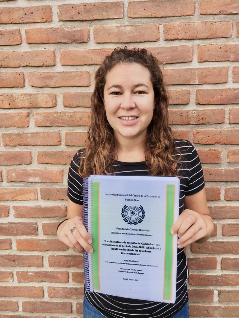 Por su parte, el 16 de abril María Pía Álvarez defendió su tesis para acceder al título de Licenciada en Relaciones Internacionales. Su trabajo titulado “Las iniciativas de secesión de Cataluña y sus obstáculos en el periodo 2006-2018. Abordajes e implicancias desde las Relaciones Internacionales”  Fue evaluado por Josefina Irurzun (Directora externa), Ana Taborga (Codirectora), Oscar Mastropierro (Evaluador) y Javier Luchetti (Evaluador).