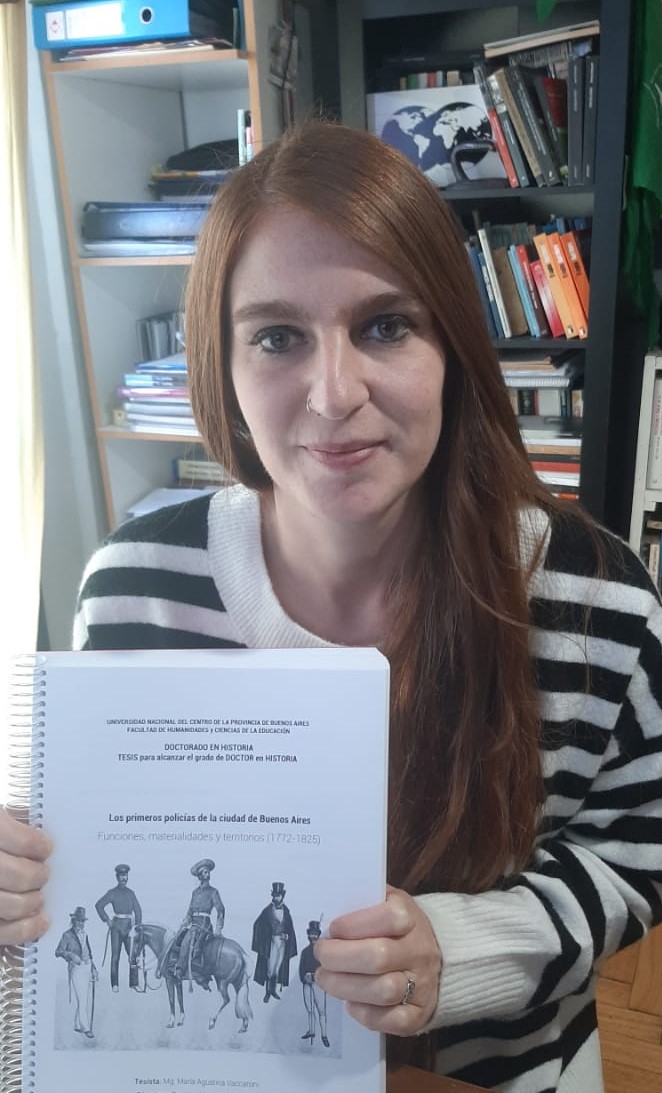 Además el pasado 26 de mayo, la alumna María Agustina Vaccaroni defendió su tesis de Doctorado en HistoriaDicha defensa de tesis se realizó bajo la modalidad no presencial, a través de la Plataforma de Google Meet y se tituló “Los primeros policías de la ciudad de Buenos Aires. Funciones, materialidades y territorios (1772-1825)”. Directora: Dra. Valeria Ciliberto (UNMDP-CONICET) – Co-director: Agustín Casagrande (UNLP). Fue evaluada por el Dr. Alejandro Agüero, el Dr. Diego Galeano y la Dra. Melina Yangilevich.
