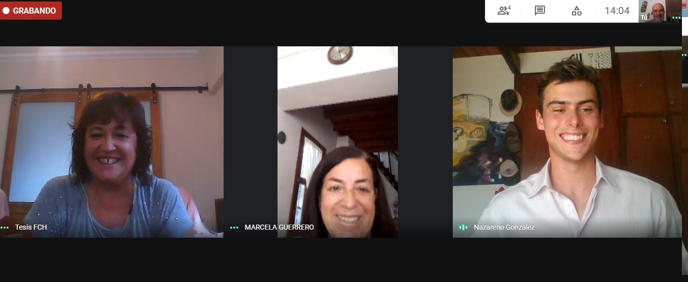 Tenemos el agrado de informar que el pasado 7 de abril Nazareno González defendió su tesis para acceder al título de Licenciado en Diagnóstico y Gestión Ambiental, teniendo como escenario la mediación tecnológica de una videollamada. Su trabajo titulado “La percepción ambiental de los jóvenes de 6º año de las EES de Tandil.” Fue evaluado por  Silvia Valenzuela (Directora), Marcela Guerrero (Evaluadora) y Aldo Ramos (Evaluador)
