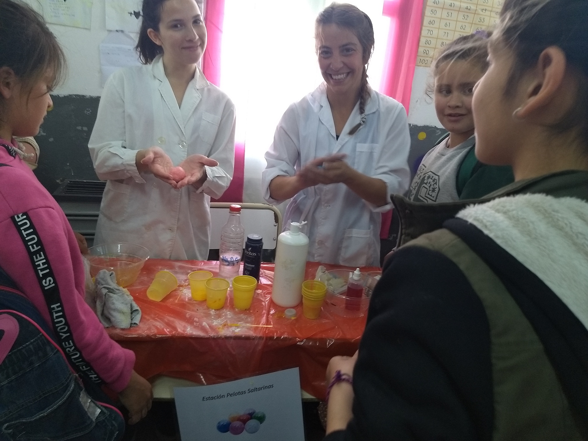 Se realizaron experimentos sencillos efectuados por las docentes de la materia y los alumnos de ambas instituciones con materiales y sustancias inocuas que permitieron interactuar con los alumnos y docentes de la escuela. Se trabajó en diferentes estaciones experimentales denominadas: